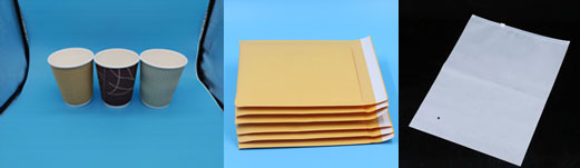 1、PLA淋膜纸杯 2、PLA淋膜纸包装袋 3、可降解包装袋